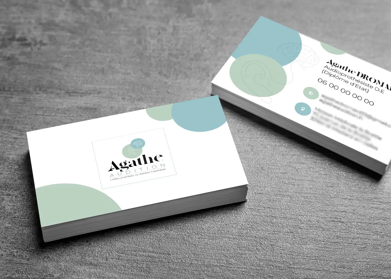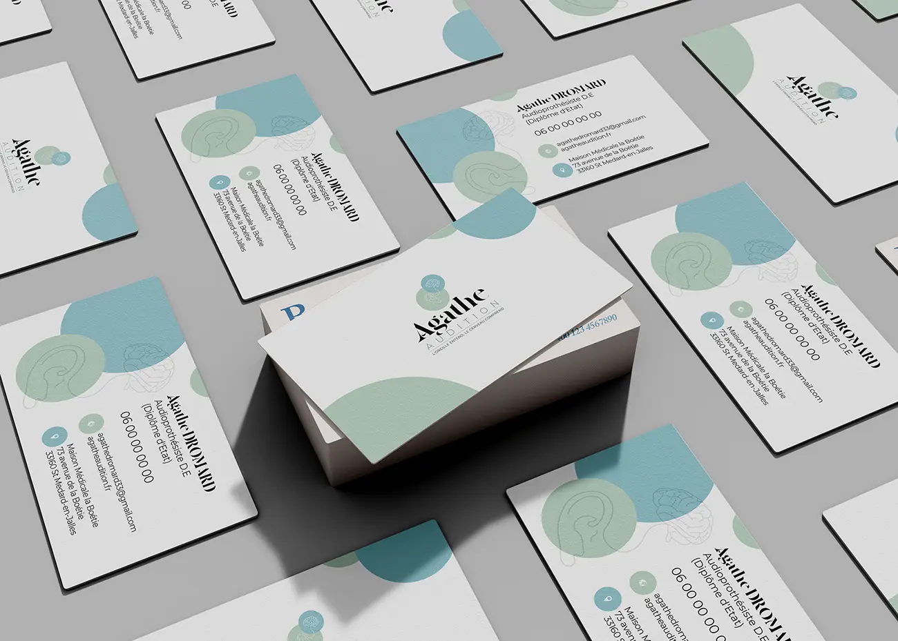 Audioprothésiste. Création de logo, identité visuelle, supports de communication.