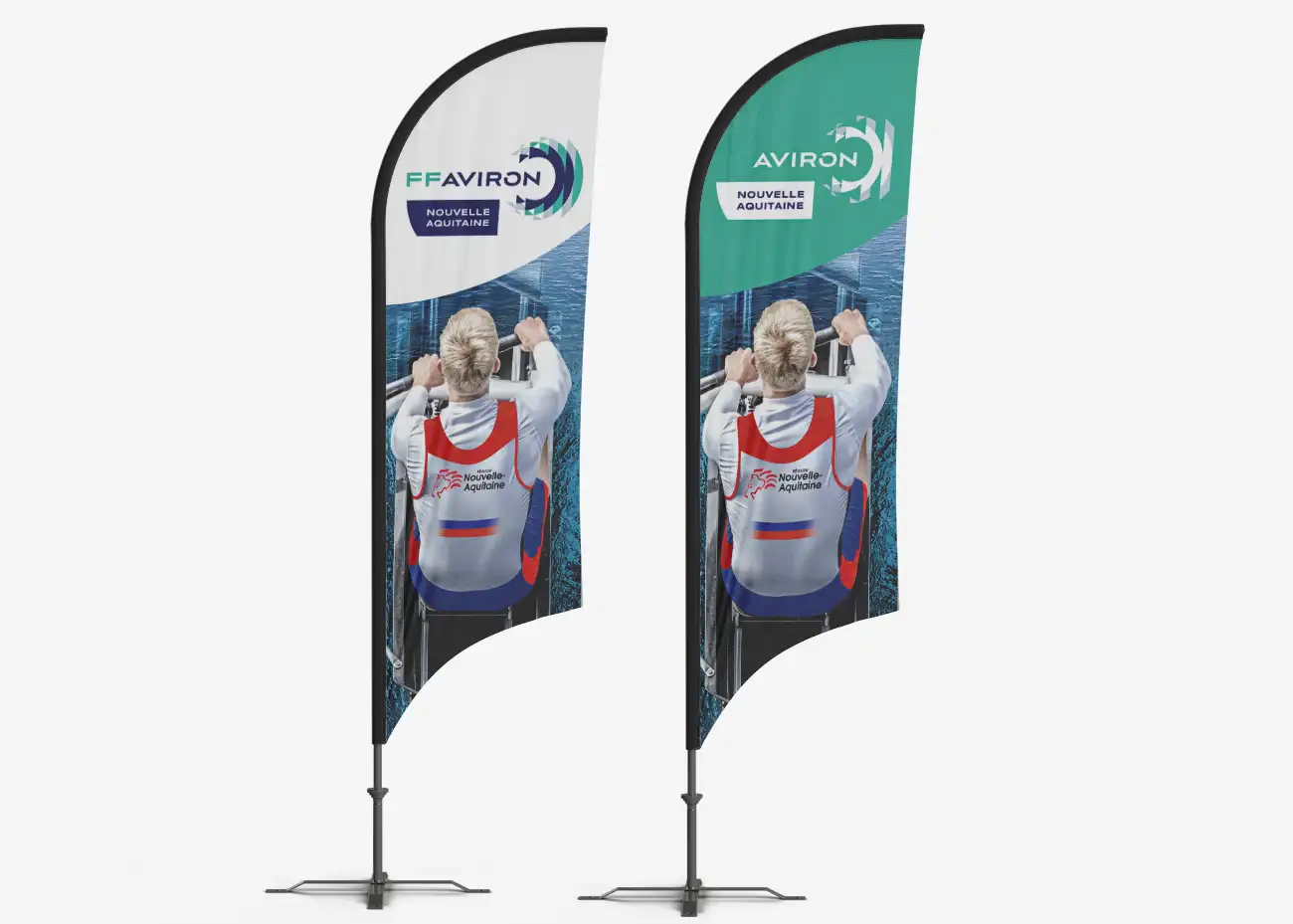 Création de logo, identité visuelle, kakemono, stand évènementiel, beach flag.